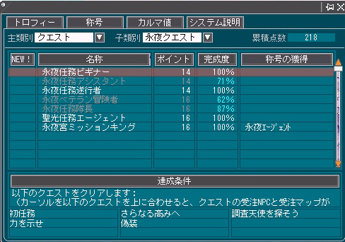 トロフィー制度の実装に伴い各街クエのLV解除と